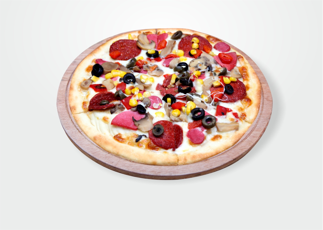 Pizza Sosu, Mozzarella, Salam, Sucuk, Sosis, Domates, Yeşil Biber, Mantar, Mısır